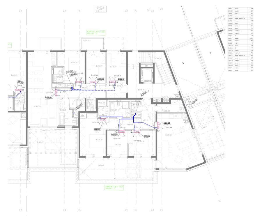 Naše kancelář Růžička a partneři s.r.o. zajišťovala projektovou dokumentaci profesí TZB (kanalizace, vodovod, plynovod, vytápění a chlazení) vč. přípojek inženýrských sítí.