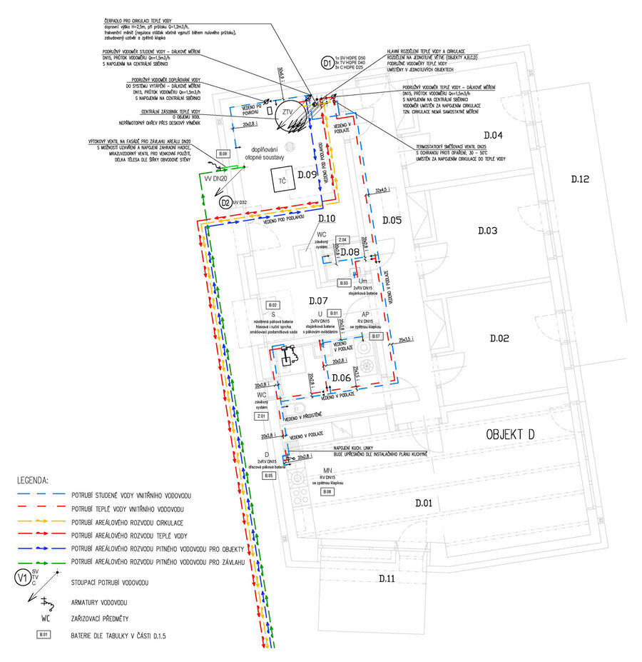 Návrh je proveden na základě architektonického návrhu společnosti NEUHÄUSL HUNAL s.r.o. a úzké spolupráce s touto společností, která zde mimo jiné zaujímá funkci HIP, zpracovatele architektonické části a interiérů.