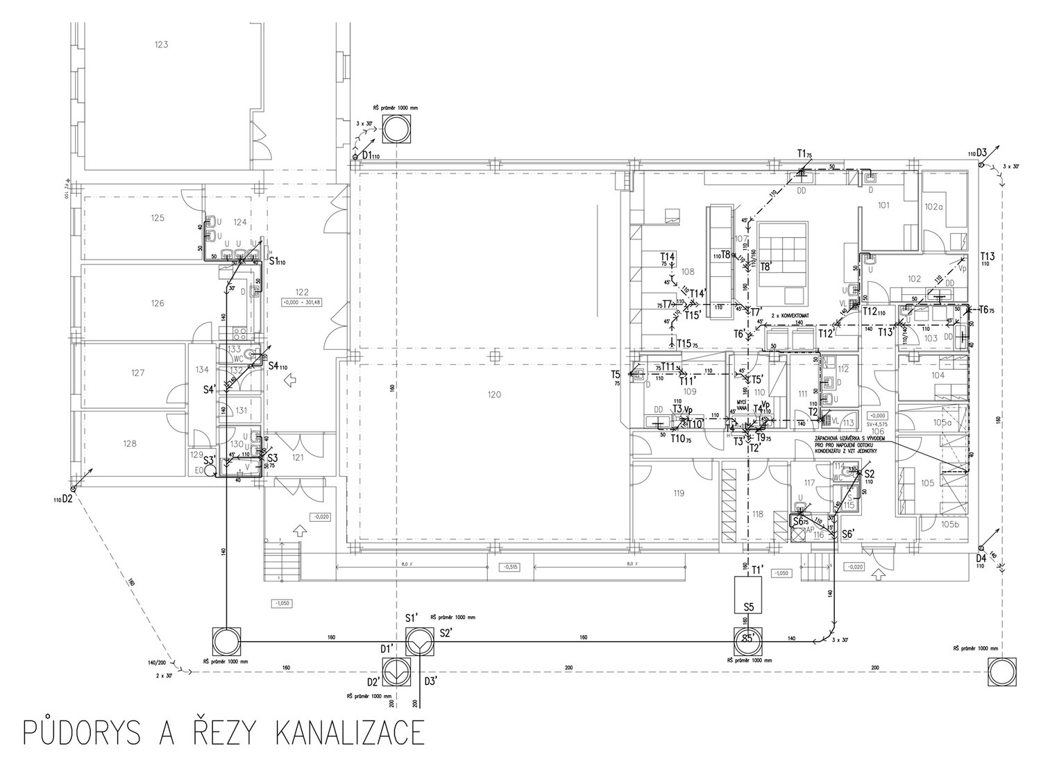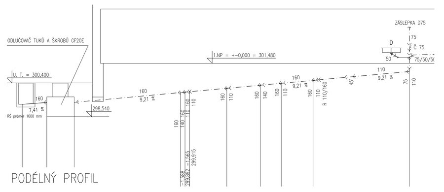 Naše kancelář Růžička a partneři s.r.o. projektovala pro novou kuchyňskou gastro-technologii vnitřní kanalizaci, vodovod a plynovod a zajištovala přípravu stavby a technickou koordinaci. Na svod splaškových vod z bytu školníka a ze sociálního zázemí kuchyně je přes odlučovač tuků a škrobů připojena tuková splašková kanalizace z kuchyně. Splaškové vody jsou odvedeny dvěma hlavními větvemi po pozemku investora do stávající revizní šachty, kde navazuje stávající přípojka veřejné kanalizační sítě. Dešťové vody objektu jsou svedeny do tří hlavních ležatých svodů na pozemku investora, které pokračují do stávající revizní šachty, kde navazuje stávající přípojka veřejné kanalizační sítě.